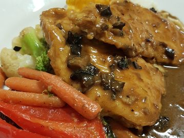 Stuffed with ground pork, sweet breadcrumbs and cheese served with apple sauce.